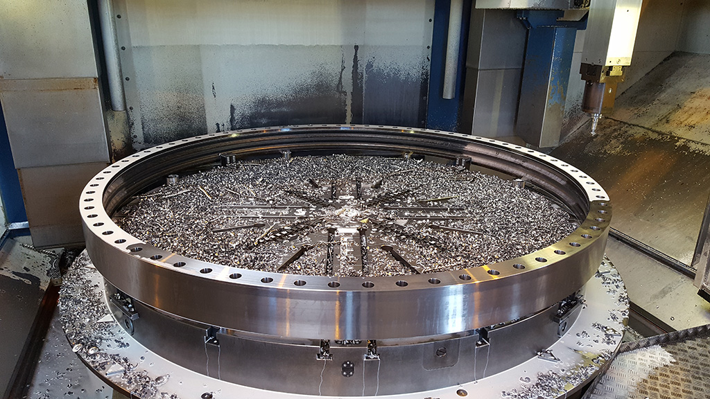 zusätzlicher Bearbeitungsbereich zusätzlich bis 1.300 mm Bauteillänge durch Versenkung der Wellen in der Tischbohrung