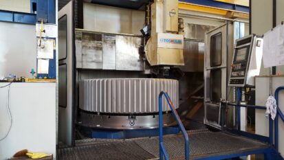 Im Oktober durften wir, für ein Großprojekt unserer Unternehmensgruppe (GearTec AG), ein Abtriebsstirnrad für ein Schiffsgetriebe bearbeiten. Das einsatzgehärtete Stirnrad gehört mit einem Gewicht von ca. 18.000 kg und einer Zahnbreite von 720 mm zu einem der Größten, die wir bisher auf unseren Maschinen bearbeitet haben. Die Bearbeitung umfasste bei uns das Hartdrehen nach dem Einsatzhärten, sowie das Zahnflankenschleifen.