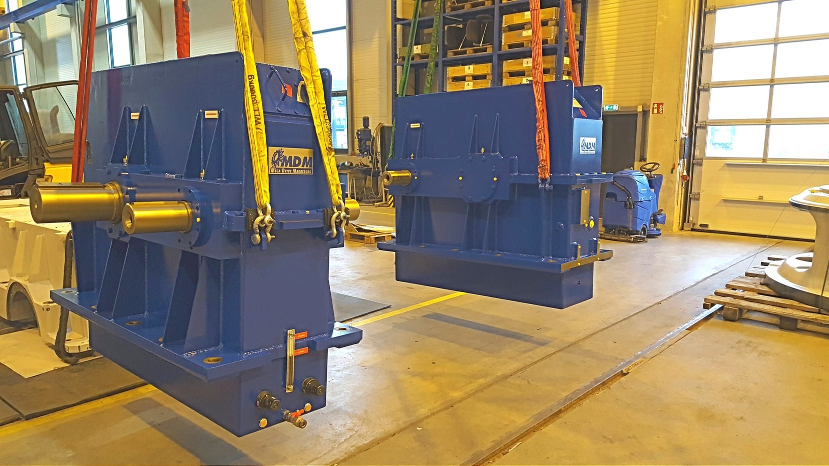 Am 26.11.2018 haben wir planmäßig zwei Mühlengetriebe des Typs MS074C06 fertig gestellt. Unsere Mühlengetriebe, mit einer Nennleistung von 736 kW und einem Stückgewicht von ca. 3600 kg, werden Ihren zukünftigen Dienst in einem osteuropäischen Aluminiumwerk verrichten. Um den Austausch unserer Mühlengetriebe gegen die vorhandenen Altgetriebe so problemlos wie möglich zu gestalten, erfolgte die Auslegung der Getriebe in enger Abstimmung mit dem Endkunden.