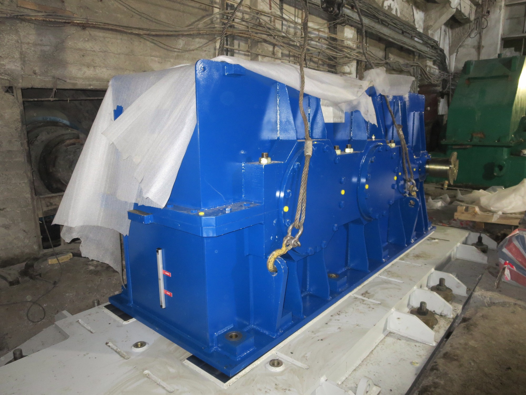 Определяющим фактором для сокращения время монтажа нашего редуктора являлось использование нашей переходной адаптерной рамы, благодаря которой клиентом были сделаны незначительные изменения фундаментной площадки старого привода D3500. Непосредственно после монтажа началась несколько дневная пуско-наладка привода при реальных производственных условиях.