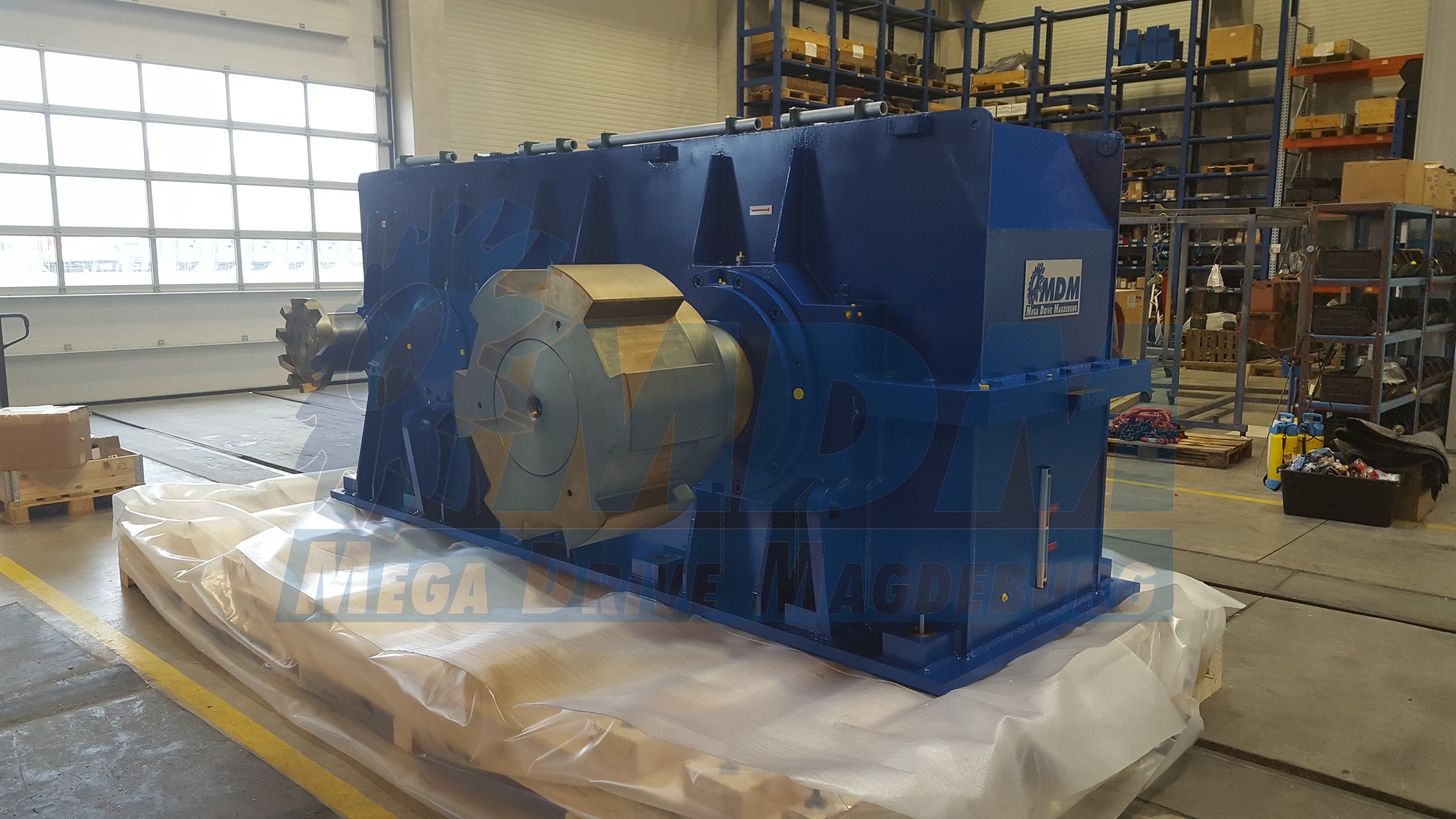 Третий мельничный редуктор MS100D37 был успешно введён в эксплуатацию 15-го мая 2019 года. Переоборудование привода мельницы прошло в запланированном режиме, поэтому завод уже после двухнедельной паузы смог снова начать производственные процессы. Такой быстрый монтаж был проведён, прежде всего, благодаря использованию специально изготовленной нами переходной рамы под мельничным редуктором. В данной раме элементы оригинального фундамента снова нашли своё применение, поэтому потребовались лишь незначительные и быстро выполняемые ремонтные и наладочные работы с фундаментом.